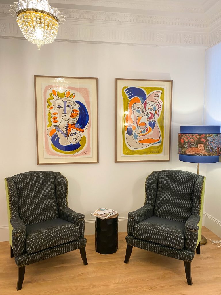 Cada rincón del centro ha sido diseñado para proporcionar una experiencia sensorial envolvente, donde el arte y la funcionalidad se encuentran en perfecta armonía. Las obras de arte de Ana de la Lastra conviven con elementos decorativos clásicos, reforzando el carácter único del espacio.