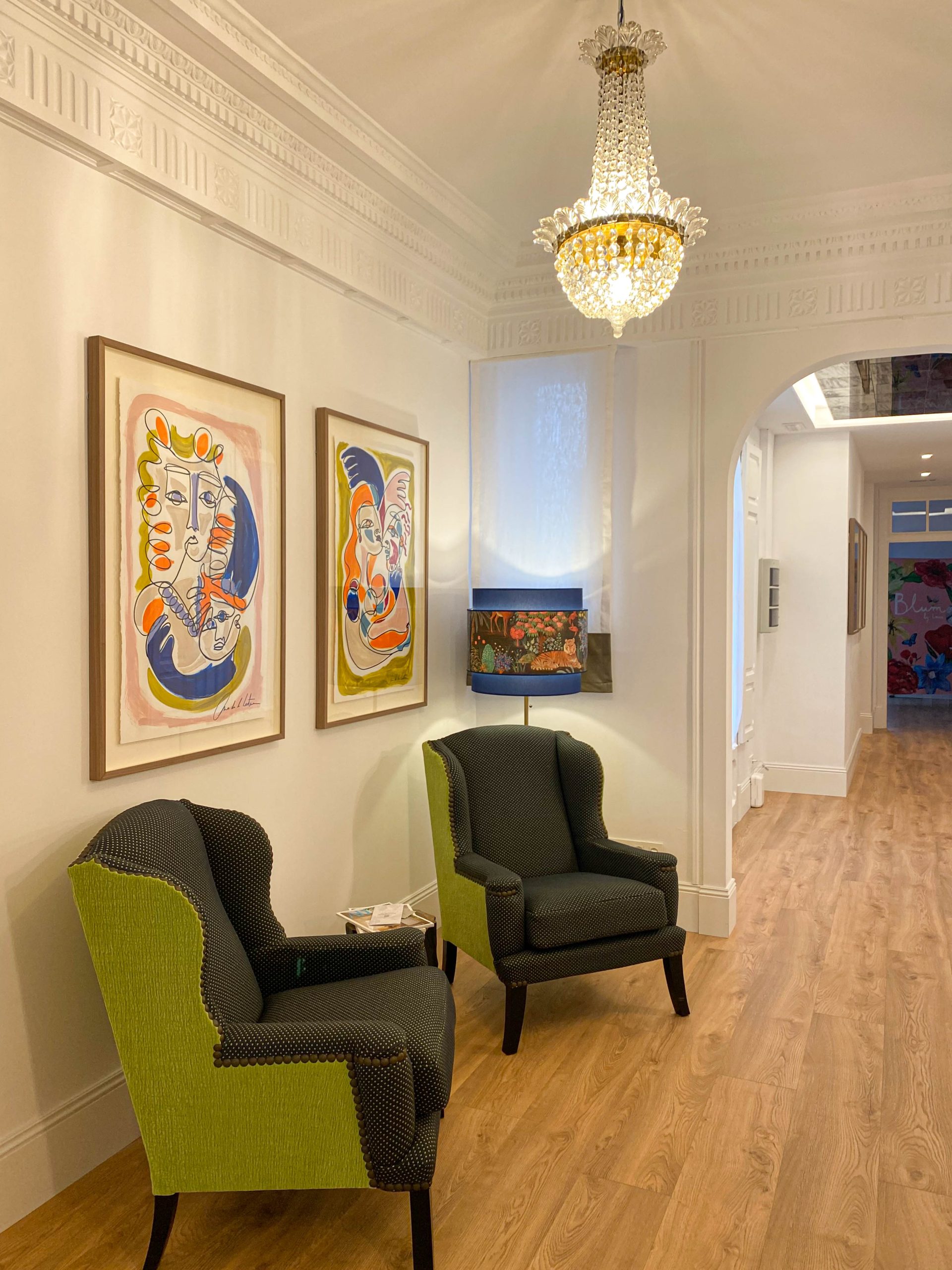 Cada rincón del centro ha sido diseñado para proporcionar una experiencia sensorial envolvente, donde el arte y la funcionalidad se encuentran en perfecta armonía. Las obras de arte de Ana de la Lastra conviven con elementos decorativos clásicos, reforzando el carácter único del espacio.