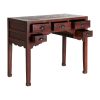 ESCRITORIO HAFLONG, EN COLOR ROJO ENVEJECIDO, DE ESTILO ORIENTAL. FABRICADO EN MADERA DE OLMO RECICLADO.