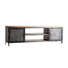 MUEBLE TV RECTANGULAR TOLGA, EN COLOR GRIS/NATURAL, DE ESTILO INDUSTRIAL. FABRICADO EN MADERA DE MANGO, COMBINADO CON HIERRO.