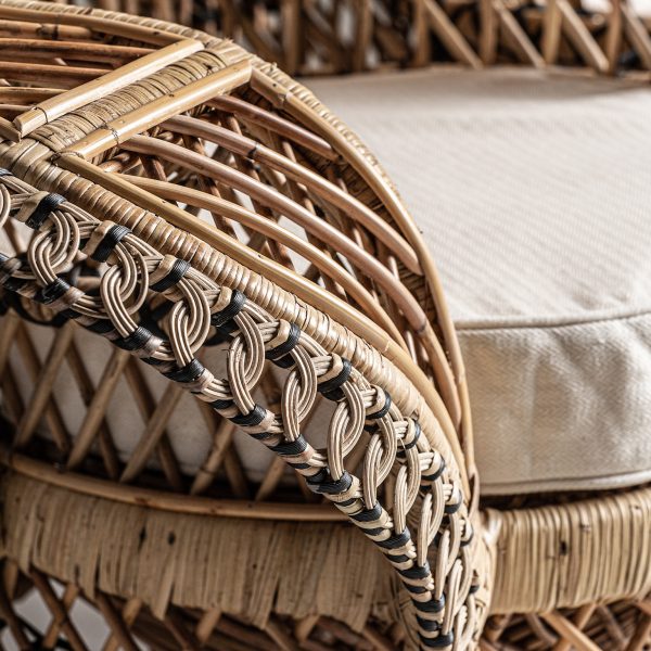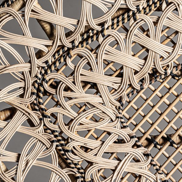 SOFÁ AGLIENTU, EN COLOR NATURAL, DE ESTILO CONTEMPORÁNEO. FABRICADO EN RATÁN, COMBINADO CON ALGODÓN.
