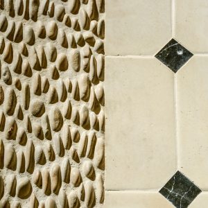 Mas adelante encontramos otro tramo con empedrado cordobés, donde se sitúan los servicios, los cuales gozan de un diseño sin igual.